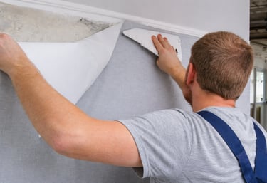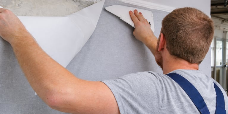 Aplicação de papel de parede com acabamento impecável, precisão nos detalhes e alinhamento perfeito.