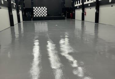 Pintura de pisos com tinta epóxi proporcionando elevada resistência e impermeabilidade;